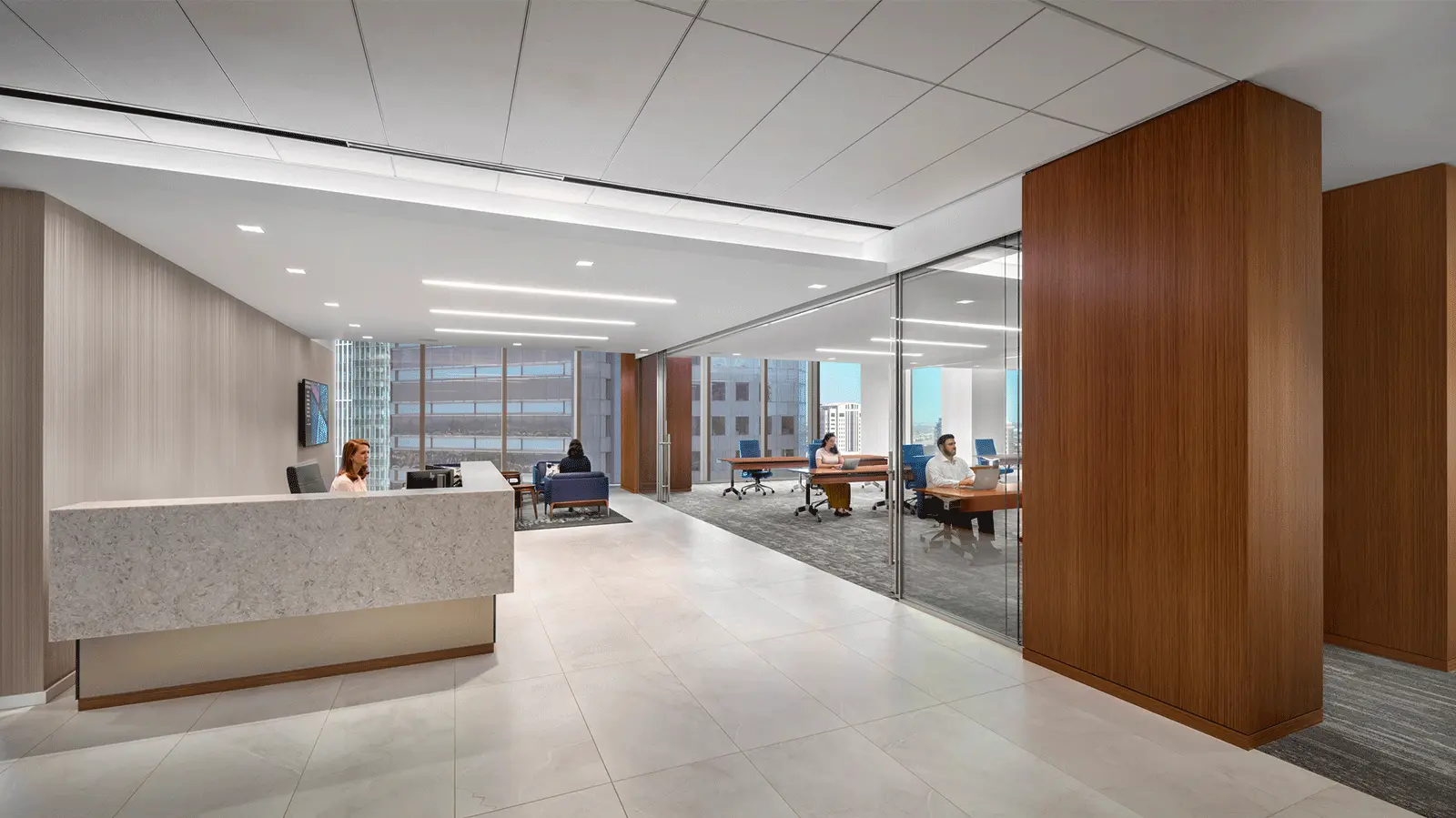 Previously moving from a temporary office, PDR was engaged to design a permanent Houston office. The Law Firm’s headquarters is located in New York, so PDR worked closely with a local and New York team to align local end-users’ needs with the law firm’s global standards.